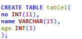 - we define what each column of each line will contain first by adding it into the () brackets