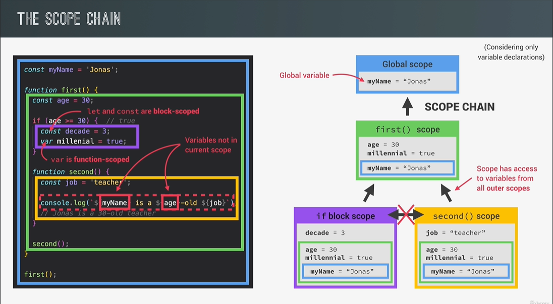 - JS retrieves the cloest information within the scope chain!!